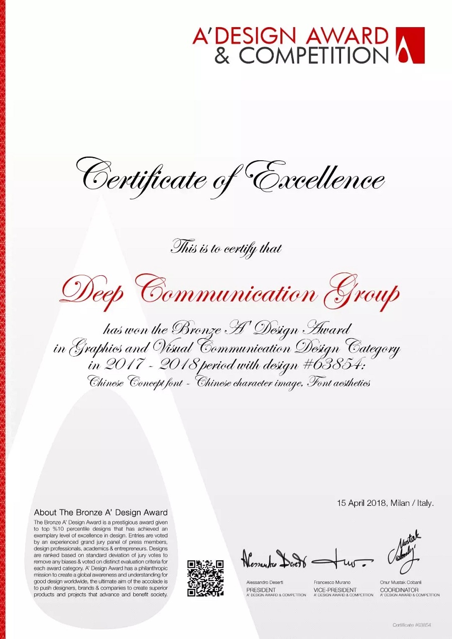 專業(yè)公關活動公司,深度傳播集團作品榮獲意大利2017 A‘Design Award 圖形與視覺傳達類銅獎!深度旗下深度...
